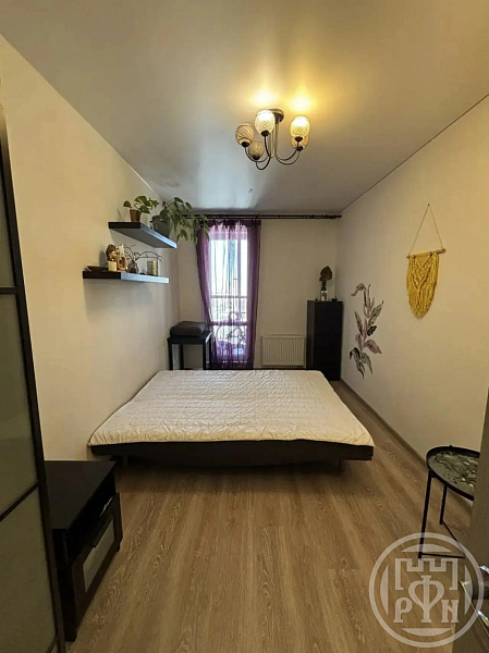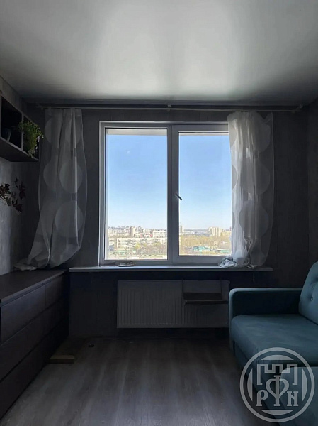 Квартира расположена на 16-ом этаже, (кухня-гостиная 17м + спальня 13м).