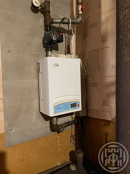 Отопление дома осуществляется с помощью твердотопливного котла, электрокотла и печи на выбор.