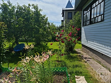 (170) Продается садовый дом и земельный участок, площадью 9 соток. Дом построен из бруса, обшит вагонкой.Внутренняя отделка-вагонка.Площадь дома на первом этаже поделена на зоны. Большая просторная веранда.На втором этаже одна изолированная комната.Ухоженный участок,много цветов, яблони,сливы,сморода, крупные ягоды на садовой черемухе.,белоснежный куст жасмина. Есть душ,беседка для отдыха,теплица. Хороший подъезд для машины.Сделано межевание..