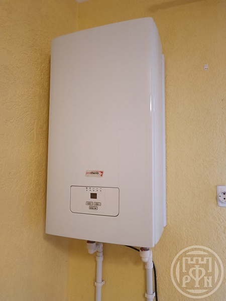 Сам таунхаус построен из газобетона, очень теплый. Отопление осуществляется электрическим котлом, водоснабжение и канализация центральные, электричество 6,5 кВт. Установлен бойлер на 80 литров. На первом этаже теплые электрические полы в прихожей и санузле.