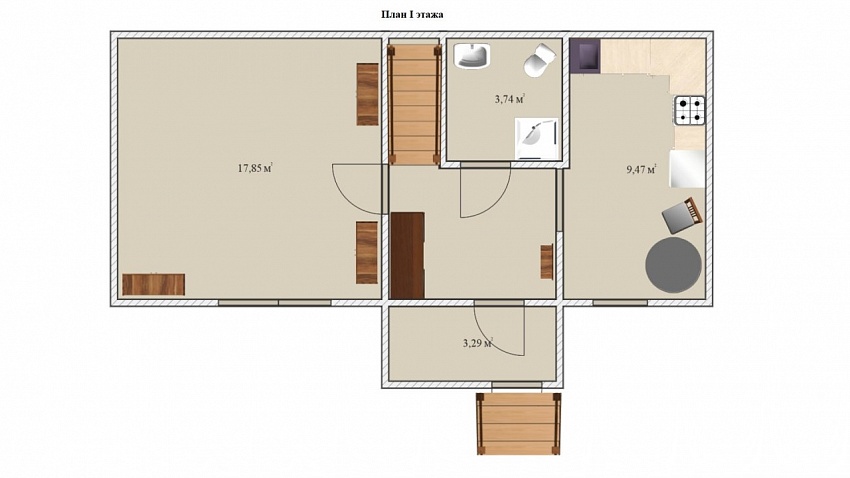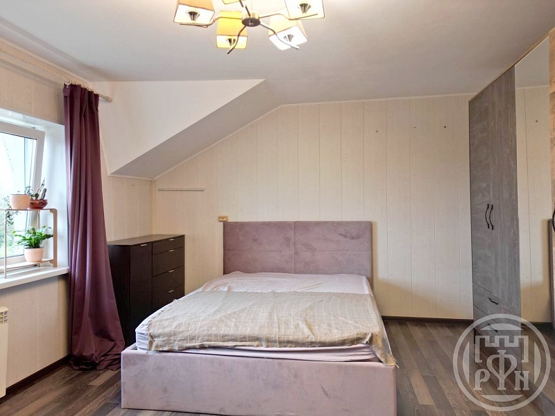 Удобная планировка предполагает на первом этаже: входную группу с системой хранения вещей, кухню с эргономичным гарнитуром, просторную гостинную и совмещенный санузел. На втором этаже расположены две спальни и ниша под гардеробную. На участке растут туи, создавая живую изгородь, есть насыпная грядка с клубникой, мангальная зона, место для парковки авто.