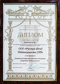 Впервые за 9 лет существования интернет-премии WEB-Realtor, победителем сразу в двух номинациях, с большим отрывом от остальных конкурсантов, стала одна компания: «Русский Фонд Недвижимости». Интернет-ресурс РФН был признан как «Лучший сайт жилой недвижимости (риэлторская компания)» и «Лучший сайт загородной недвижимости (риэлторская компания)». Такая оценка, данная не только квалифицированным жюри, но и другими участниками конкурса, говорит о высокой профессиональной работе и надежности компании.
