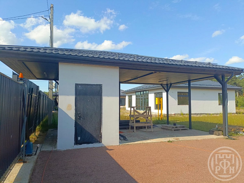 (104) пос.Дубровка, ул.Московская. В продаже новый, современный одноэтажный дом из газобетона.Грамотно продуманная планировка: кухня- гостиная, 3 комнаты, 2 СУ, постирочная, сауна, гардеробная ; котельная с отдельным входом.В доме 15 КВТ электричества; магистральный газ, центральный водопровод, канализация- септик. Готов под чистовую отделку.Участок огорожен, сделан газон. На участке навес на 2 машины, хозблок. Тихое,спокойное место, неподалеку лес. Поселок с развитой инфраструктурой и удобным сообщением с СПб. Идеальное место для загородного дома и постоянного проживания. Отличное предложение: возможна беспроцентная рассрочка в течении года.