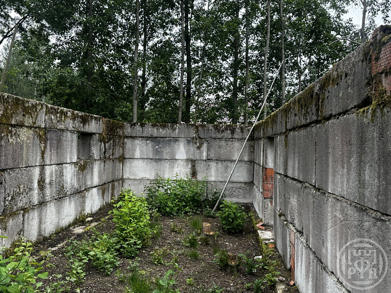 На участке расположен высокий цокольный фундамент размером 10*12.