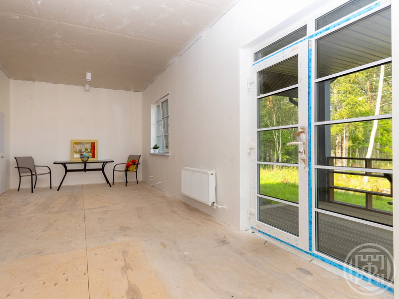 соток. Дом 2024 г.п., при строительстве которого использовались инновационные технологии, в результате чего получился высокотехнологичный и энергоэффективный дом. На 1 этаже дома расположена кухня - гостиная 40,5 кв.м., спальня 11 + 11 +7,7 кв. м, котельная и просторный совмещенный с/у. Дорогие отделочные материалы. Высота потолка 3 м. Закрытая терраса. Дом будет передан покупателю в предчистовой отделке. Фундамент - ж/б сваи. Стены - наружная отделка имитация бруса, утеплитель изоспан 150 мм. Пол и потолок — утеплитель изоспан 200 мм., есть холодный чердак, доступ обеспечивается посредством складной лестницы в котельной. Крыша — фальцевая кровля. Электричество 10 кВт, вода — скважина, канализация — септик, отопление электрический котел (радиаторный тип отопления). Интернет — оптоволокно и исключительная возможность жить на природе и работать удаленно. Подъезд - грунтовая хорошая дорога. Изумительное по красоте место! Хвойный лес вокруг Вашего дома. С одной стороны хорошо развитая инфраструктура и транспортная доступность: 15 мин до школы, д/сада и больницы, 30 мин до электрички, сетевые магазины и аптеки — 7 мин на автомобиле, магазины с продуктами первой необходимости — 5 мин пешком, рестораны, кафе, спортивный комплекс с бассейном — 10 минут на авто, 30 минут на автомобиле от КАД. С другой стороны непередаваемая красота и свежесть хвойного леса, грибы, ягоды, экотропа для любителей активного отдыха. Финский залив — 4 км. Администрация КП отвечает за все жилищно — коммунальные вопросы (дороги, охрана, вывоз мусора). Чистый воздух, тишина, уединение и демократичная стоимость — это фантастическое сочетание. Превосходный вариант для постоянного места проживания либо для загородного отдыха. Участок и дом в собственности. Чистая прозрачная сделка.