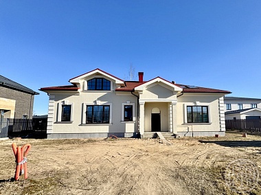 Санкт-Петербург, Петергоф, КП `Петергофские дачи`. Вашему вниманию предлагается новый стильный дом площадью 382,2 кв.м в поселке бизнес-класса. Коттедж выполнен в классическом стиле, так что будет выглядеть актуально ещё много лет. В доме три мастер спальни — хватит места для всей семьи, есть отдельный кабинет для работы или хобби.  Балкон на мансардном этаже можно обустроить как угодно: например, сделать детскую игровую, спортзал или зону отдыха. Эффект второго света делает помещения ещё просторнее и наполняет их естественным светом. Отделка white box и готовая разводка электричества позволят сразу приступить к финишной отделке и воплотить в жизнь любой дизайн проект без лишних хлопот с черновыми работами. Стены из газобетона обеспечат хорошую тепло- и звукоизоляцию: зимой в доме будет тепло, летом — прохладно, а в комнатах всегда тихо и уютно. Фасад отделан декоративной штукатуркой — это красиво и надёжно, а крыша покрыта гибкой черепицей, которая прослужит долгие годы. Надежный застройщик «Азбука Строительства»  сохранил все этапы строительства — вы можете быть уверены в качестве выполненных работ. Не упустите шанс стать владельцем дома, созданного для комфортной жизни! Городские коммуникации заведены в дом: электричество 12 кВт, центральная канализация и водоснабжение, газ подключен к дому. Позвоните нам, мы оперативно организуем просмотр Вашего дома мечты.
